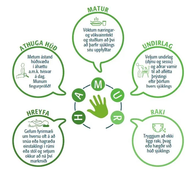 Á Landspítala er HAMUR meðferðarpakkinn notaður þegar sjúklingur er í áhættu fyrir myndun þrýstingsskaða.
