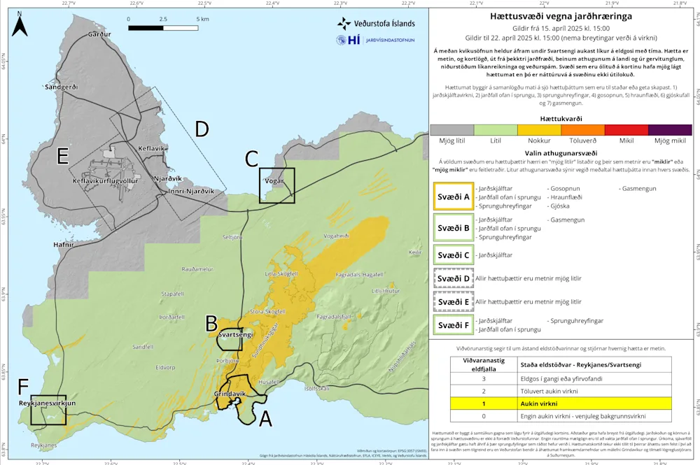 Ríkislögreglustjóri í samráði við lögreglustjórann á Suðurnesjum ákvað þann 8. apríl sl. að færa almannavarnastig af hættustigi á óvissustig. Fréttatilkynning um breytingu á almannavarnastigi var birt á heimasíðu almannavarna kl. 16:37 þann sama dag.