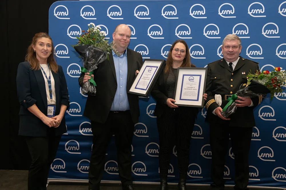 Ásdís Ýr Arnardóttir, sérfræðingur embættisins í samfélagslöggæslu og afbrotavörnum, veitti viðurkenningunni viðtöku við hátíðlega athöfn á ársþingi SSNV í dag. Henni til fulltingis var Pétur Björnsson, yfirlögregluþjónn.