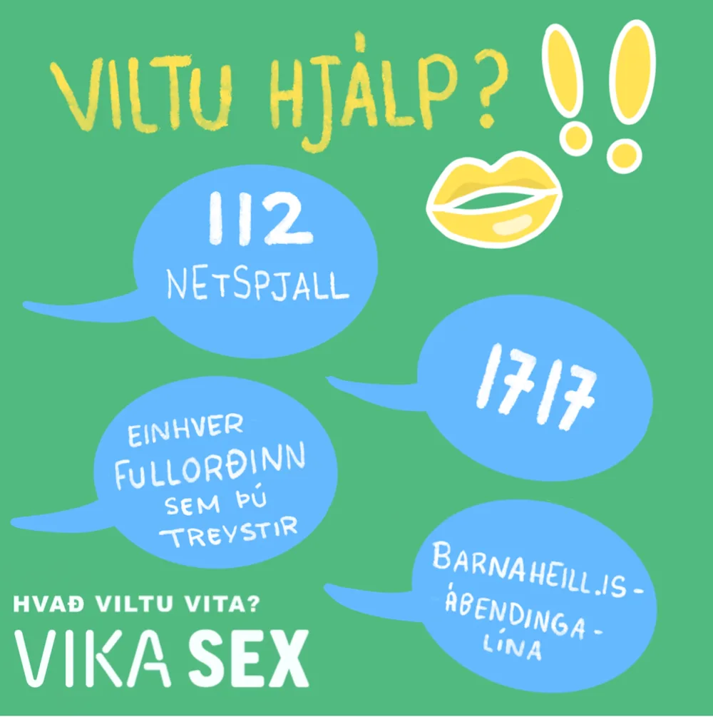 Í þessari viku hefur staðið yfir Vika6, sem er árleg vika kynheilbrigðis fyrir börn og unglinga í grunnskólum og frístundastarfi. Af því tilefni var útbúið fræðsluveggspjald um kynferðislegar myndsendingar og því dreift í skóla, félagsmiðstöðvar og á bókasöfn. Veggspjaldið verður jafnframt hluti af því fræðsluefni sem er aðgengilegt fyrir börn á vefgátt 112 gegn ofbeldi. Höfundur er Kolbrún H. Sigurgeirsdóttir og hönnuður og teiknari er Bergrún Íris Sævarsdóttir.