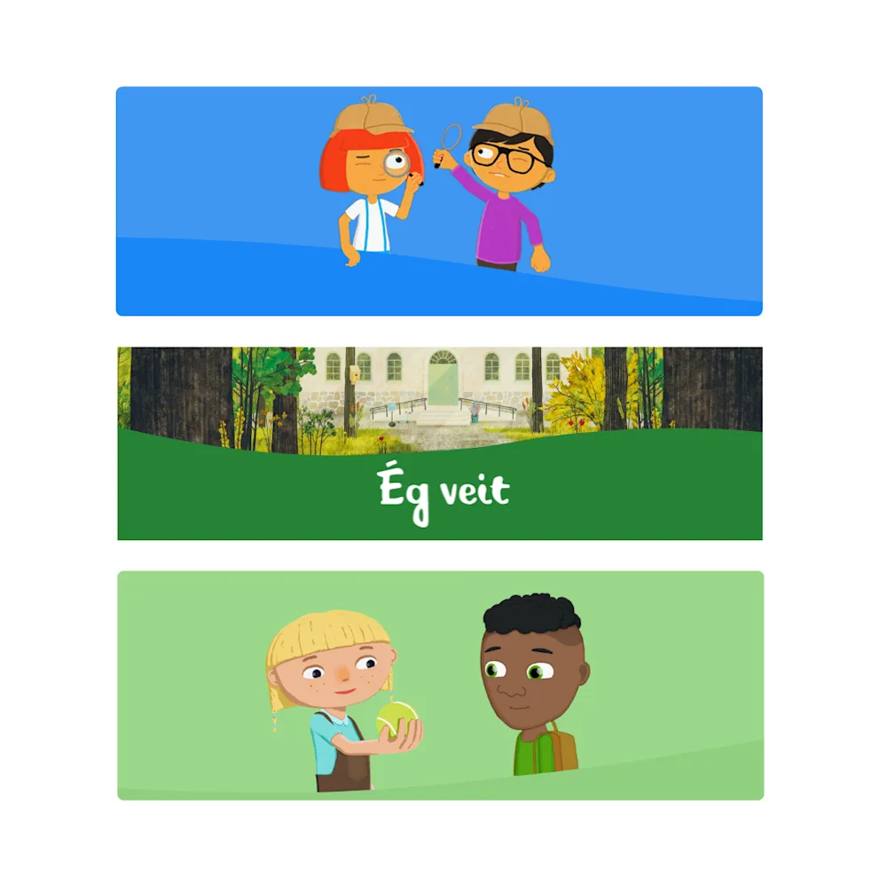 Tilfinningarnar mínar: Það er mikilvægt að þekkja og hafa orð yfir tilfinningar okkar til að geta talað um hvernig okkur líður. Þá er auðveldara að koma orðum að því sem okkur sjálfum finnst og skilja hvernig öðrum líður. Í hlutanum „Tilfinningar mínar“ læra börnin meira um tilfinningarnar gleði, sorg og hræðslu.