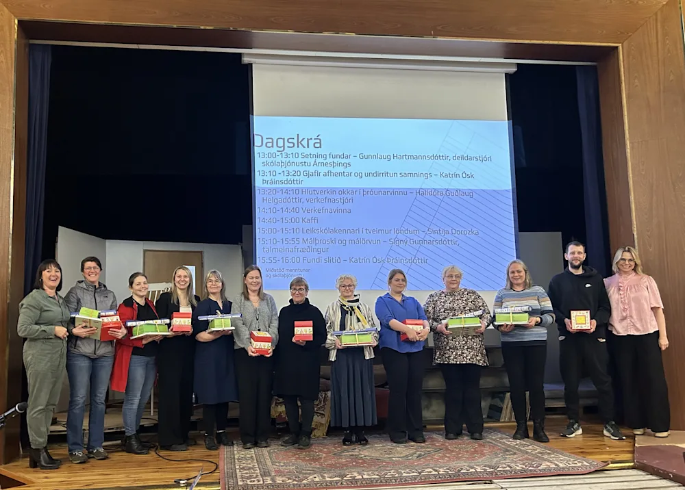 Undirritunin fór fram í Kerhólsskóla á formlegum upphafsdegi verkefnis en við það tækifæri afhentum við leikskólunum námsefni að gjöf. Að auki fengu þátttakendur verkefnisins, allt starfsfólk leikskólanna, fræðslu frá Signýju Gunnarsdóttur talmeinafræðingi hjá Miðstöð menntunar og skólaþjónustu og Halldóru Guðlaugu Helgadóttur verkefnisstjóra.