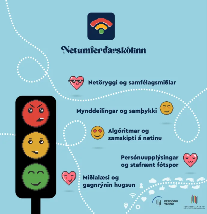 Netumferðarskólinn er um þessar mundir á ferðalagi um landið að heimsækja nemendur og kennara í 4.-7. bekk. Ferðalagið hófst á Austurlandi og mun verkefnið halda áfram för sinni um landið næstu mánuði. Netumferðarskólinn er samstarfsverkefni Persónuverndar og Fjölmiðlanefndar og miðar að því að efla fræðslu um persónuvernd, miðlalæsi og netöryggi barna í stafrænni tilveru. Átakið var tilkynnt á alþjóðlega netöryggisdeginum í ár og er hluti af aðgerðaáætlun stjórnvalda í netöryggi 2022-2027.