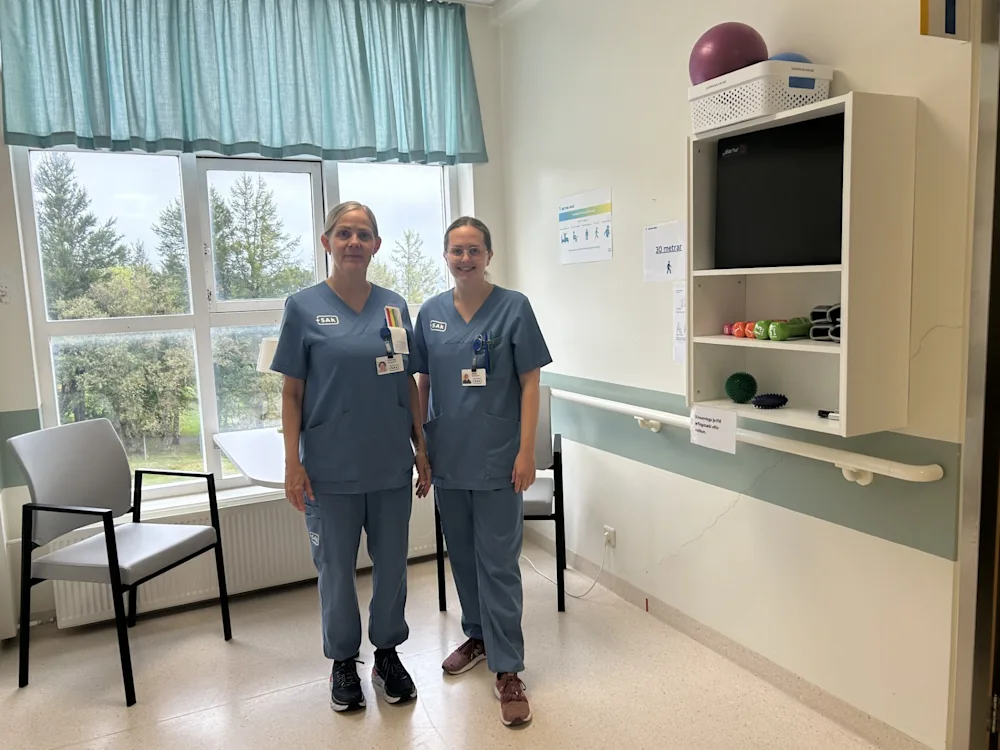 Hreyfihornin eru vinsæl meðal sjúklinga. Kristveig Atladóttir og Jana Björg Róbertsdóttir, sjúkraþjálfarar, hluti þeirra sem þátt í verkefninu "Hreyfum okkur"