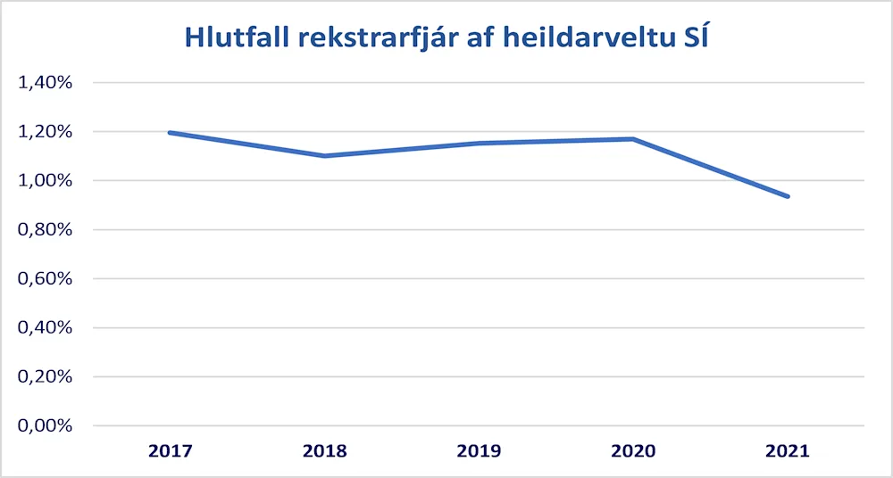 Sjúkratryggingar hafa tekið miklum breytingum síðustu ár og stofnunin tekst á við sívaxandi verkefni. Helsta áskorunin er að fjármagn skortir til að sinna öllum þeim mörgu og stóru verkefnum sem stofnuninni hafa verið falin. Hlutverk Sjúkratrygginga er að koma þeim fjármunum sem veittir eru til heilbrigðisþjónustu til þeirra sem eiga að njóta þjónustunnar. Þetta er gert með því að semja um þjónustu, útvega og afgreiða hjálpartæki, greiða veitendum fyrir þá þjónustu sem þeir sinna, greiða sjúklingum bætur og styrki eftir því sem reglur segja til um o.s.frv. Líta má á fjárveitingar til rekstrar Sjúkratrygginga sjálfra sem umsýslukostnað (e. overhead) við ofangreint, þ.e. að koma þeim fjármunum sem veittir eru til heilbrigðisþjónustu til þeirra sem eiga að njóta þjónustunnar. Því miður hafa fjárveitingar til rekstrar Sjúkratrygginga ekki haldið í við verkefni stofnunarinnar og er sú þróun orðin talsvert áhyggjuefni. Rekstrarkostnaður Sjúkratrygginga sem hlutfall af því heildarfjármagni (veltu) sem stofnunin afgreiðir vegna áðurnefndra verkefna hefur lækkað verulega síðustu 5 ár eins og meðfylgjandi mynd sýnir. Árið 2017 nam hlutfall rekstrarkostnaðar af veltu 1,19% en árið 2021 nam hann 0,94% af veltu. Þessi lækkun nemur tæplega 22% og eru rekstrarfjárveitingar til stofnunarinnar miðað við verkefnin miklum mun lægri en hjá sambærilegum stofnunum erlendis. Þetta er áhyggjuefni þar sem Sjúkratryggingum er treyst fyrir því að útvega landsmönnum heilbrigðisþjónustu með samningagerð. Stofnuninni er einnig treyst fyrir umsýslu verulegs hluta fjárlaga þjóðarinnar og þar með ráðstöfun umtalsverðs hluta af skattfé almennings. Svo mikilvæg verkefni krefjast öflugrar umgjarðar til að tryggja bestu mögulegu nýtingu þessara miklu fjármuna í þágu þjóðarinnar og því sérstakt gleðiefni að ríkisstjórnin hefur í stjórnarsáttmála heitið að styrkja stofnunina. Brýnt er að það gangi eftir sem fyrst.