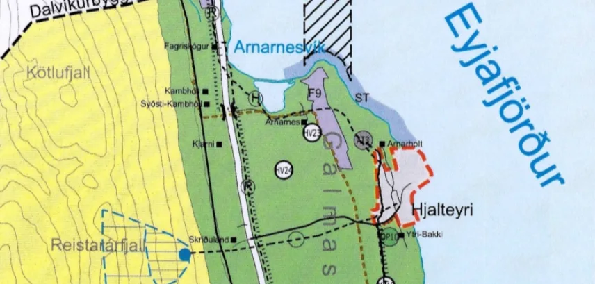 Breytingin gerir ráð fyrir lagningu hitaveituæðar frá Hjalteyri að sveitarfélagamörkum við Dalvíkurbyggð.