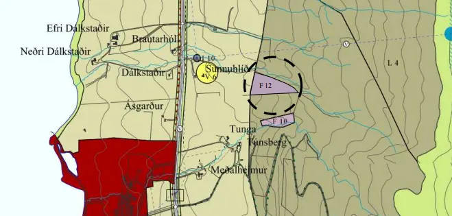 Í breytingunni felst að skilgreint er nýtt 3,2 ha svæði fyrir frístundabyggð F12, landbúnaðarland L3 minnkar sem því nemur. Þegar eru tvö frístundahús á jörðinni en gert er ráð fyrir að þeim fjölgi í fjögur.