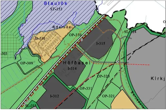 Í breytingunni felst lítilleg stækkun og leiðrétting á mörkum iðnaðarsvæðis I-314, syðst upp að Höfðaselsholti. Þá er iðnaðarsvæði I-316 sameinað við I-315 og skógræktar- og landgræðslusvæði SL-317 fellt út. Engin breyting verður á ákvæðum aðalskipulags fyrir svæðin.