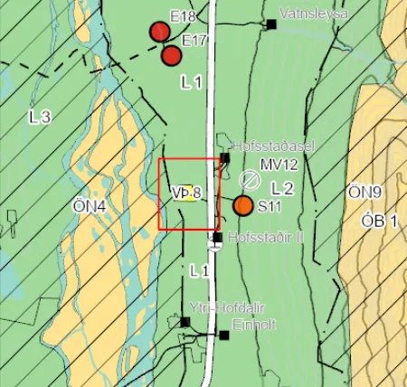 Í breytingunni felst að verslun og þjónusta VÞ-8 stækkar úr 2,1 ha í 5 ha og byggingarmagn eykst úr 2.000 m2 í 2.500 m2. Landbúnaðarsvæði L1 minnkar sem því nemur. Gerð verður breyting á sveitarfélagsuppdrætti þar sem VÞ-8 verður fláki í stað punktmerkingar auk þess sem heiti reitsins verður breytt úr Hofsstaðaseli í Hofsstaði.