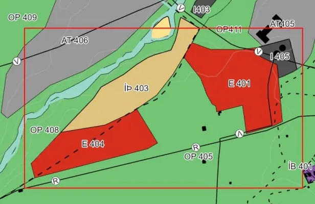 Í breytingunni felst breytt afmörkun efnistöku- og efnislosunarsvæðis E-401. Svæðinu er skipt upp í þrjú svæði, 3 ha verður skilgreint sem opið svæði OP-405, 4,5 ha fær nýtt landnotkunarnúmer (E-404) þar sem gert er ráð fyrir efnislosun og 5,9 ha verður áfram skilgreint sem E-401 þar sem gert er ráð fyrir efnistöku, 26.000 m3. Afmörkun iðnaðarsvæðis I-405 minnkar úr 1,2 ha í 0,9 ha.