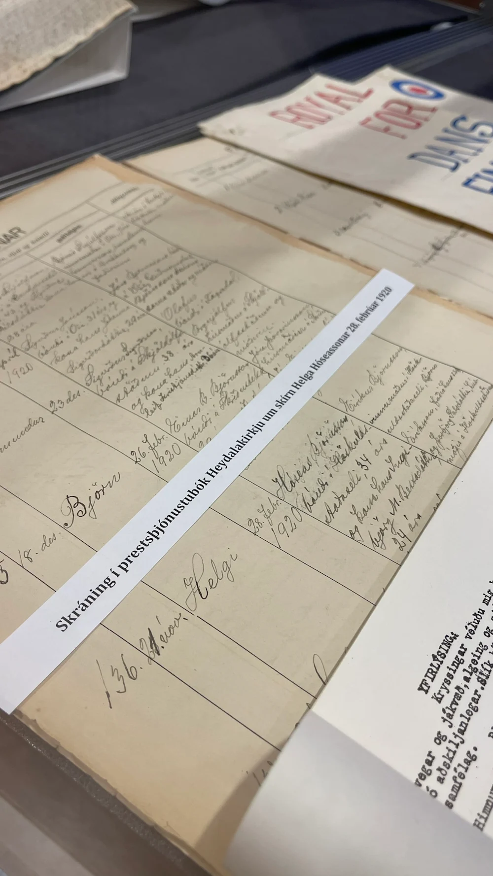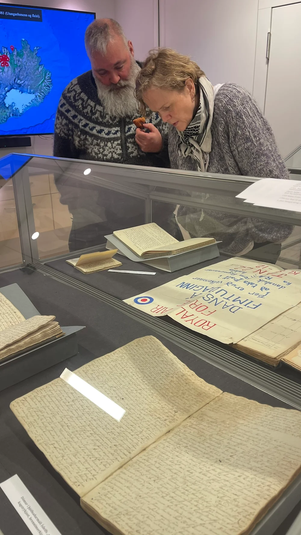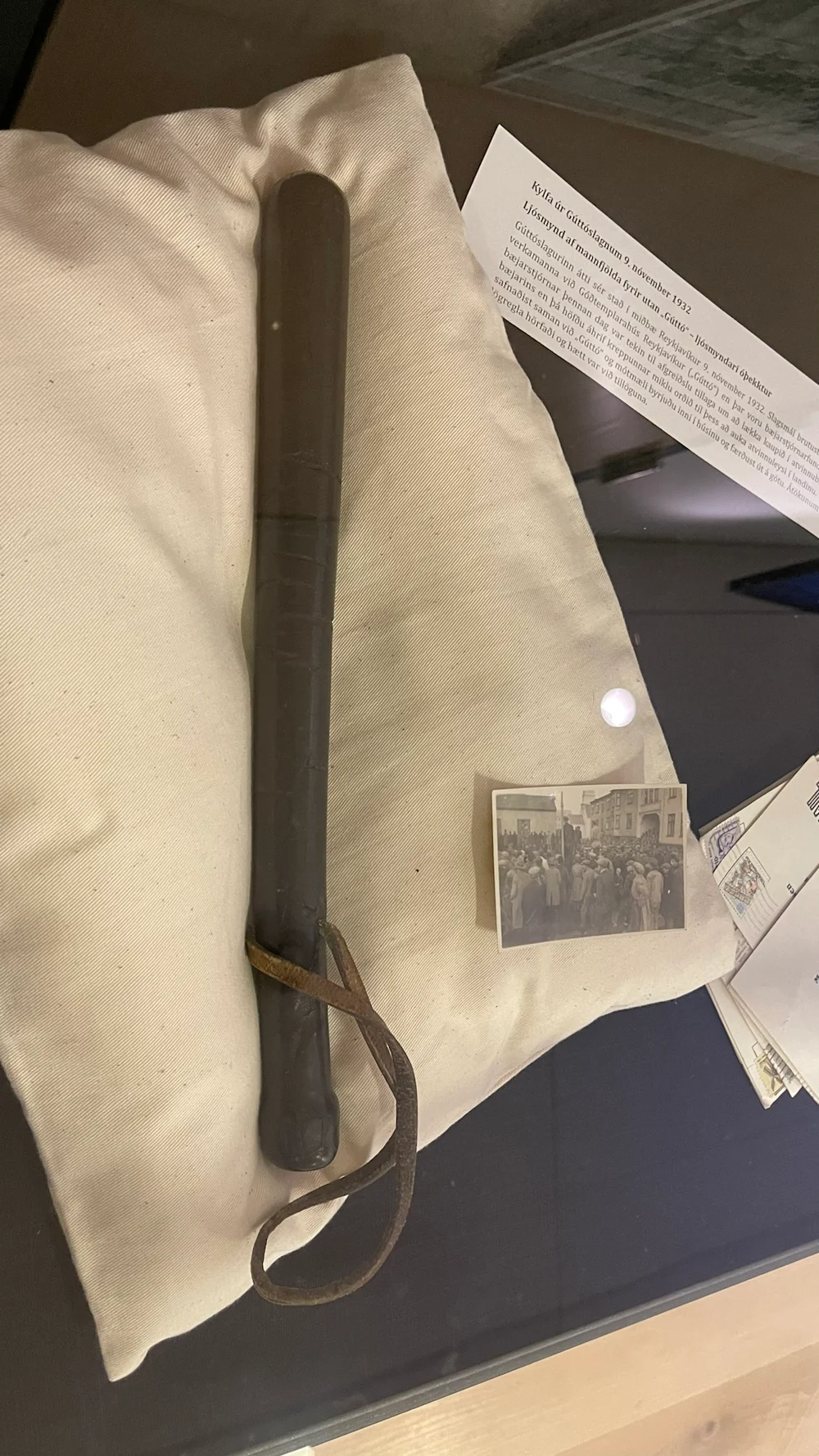 Meðal þess sem gestir gátu skoðað var ein af kylfunum sem notaðar voru í Gúttóslagnum 1932 þegar slóst í brýnu milli verkamanna og lögreglu í Reykjavík. Fjöldapóstur gegn hvalveiðum sem barst erlendis frá í sekkjatali til forsætisráðuneytisins var sýndur, ein af minnisbókum Jóhönnu Knudsens með skýrslum hennar um ungar stúlkur í „ástandinu“, kirkjubókin þar sem skírn Helga Hóseassonar er skráð, rímur hans um Ésu Kryssti og dómabók sem rakti þjófnaðarmál gegn Ísleifi Jóhannessyni, alræmdum uppreisnarsegg sem uppi var í lok 18. aldar og byrjun þeirrar 19.