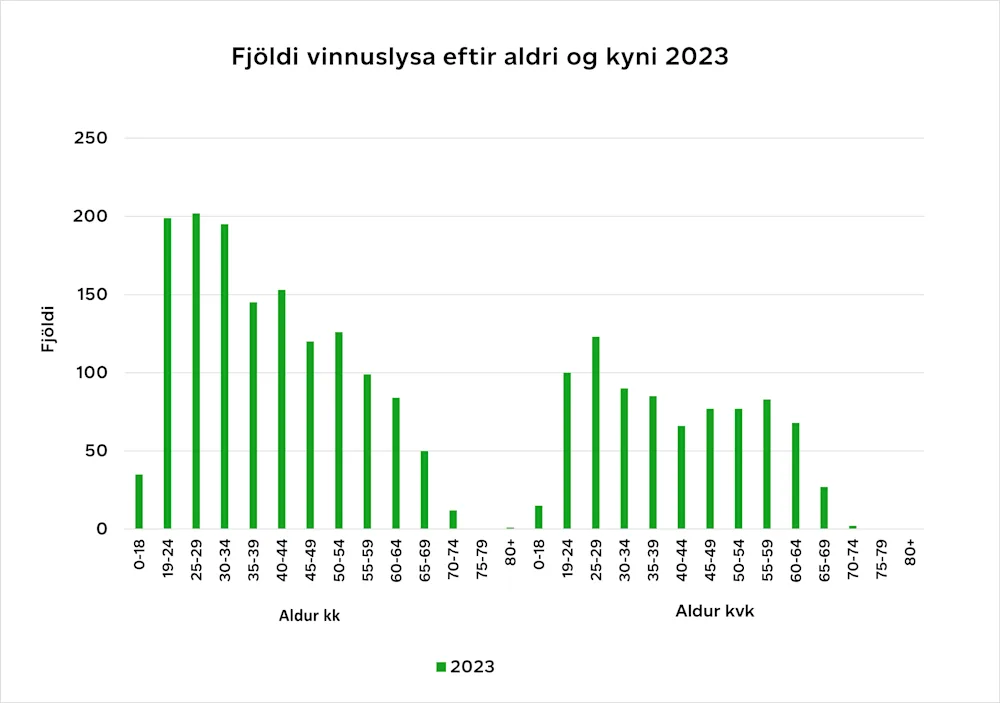 Tilkynntum vinnuslysum fjölgaði jafnt og þétt til ársins 2020 þegar þeim fækkaði nokkuð. Á það við um bæði tilkynnt vinnuslys og hlutfall vinnuslysa af starfandi á vinnumarkaði. Líklega má rekja þetta til áhrifa heimsfaraldurs en mikið hægði á takti samfélagsins á meðan hann stóð sem hæst og fjarvinna varð algeng. Eftir 2020 hefur vinnuslysum fjölgað ár frá ári og árið 2023 var fjöldinn orðinn sá sami og árið 2019, en að teknu tilliti til fjölgunar á vinnumarkaði eru vinnuslys engu að síður enn hlutfallslega færri en árið 2019. Árið 2019 lenti 1,11 prósent af starfsfólki á vinnumarkaði í vinnuslysi en 1,03 prósent árið 2023.