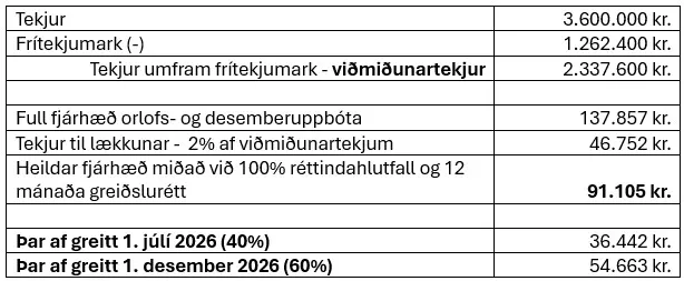 Orlofs- og desemberuppbætur árið 2026 eru að hámarki: