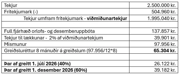 Orlofs- og desemberuppbætur árið 2026 eru að hámarki: