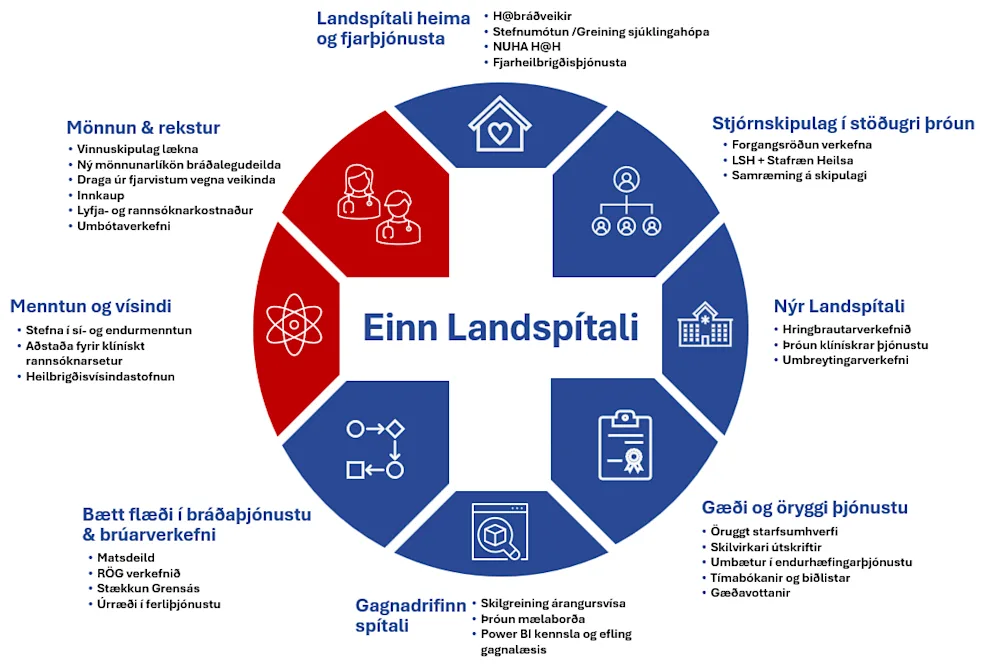 The 2026 priority initiatives at Landspítali cover a range of areas, including quality and safety of care, improved patient flow in emergency services, telehealth services, as well as staffing and operations.