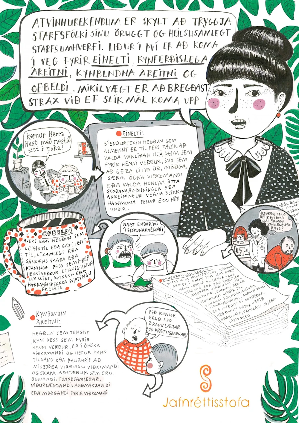 Kynbundið ofbeldi, kynbundin áreitni og kynferðisleg áreitni: Gera skal sérstakar ráðstafanir til að koma í veg fyrir að starfsfólk, nemar og skjólstæðingar stofnana verði fyrir kynbundnu ofbeldi, kynbundinni áreitni eða kynferðislegri áreitni á vinnustað, stofnun, í félagsstarfi eða skólum. Nýverið hafa réttindi starfsfólks verið frekar tryggð með sérstakri reglugerð um aðgerðir gegn einelti, kynferðislegri áreitni, kynbundinni áreitni og ofbeldi á vinnustöðum.